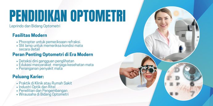 Di era modern ini, kesehatan mata menjadi salah satu aspek penting yang sering terabaikan oleh banyak orang. Dengan meningkatnya penggunaan gawai dan aktivitas yang menuntut penglihatan intens, masalah kesehatan mata semakin banyak dijumpai di berbagai kalangan. Hal ini membuat profesi di bidang optometri semakin dibutuhkan dan memiliki prospek yang cerah. Salah satu institusi pendidikan yang berkomitmen mencetak tenaga profesional di bidang ini adalah Akademi Refraksi Optisi Leprindo. Melalui program pendidikan yang berkualitas, kampus ini membekali mahasiswanya dengan ilmu dan keterampilan yang siap pakai untuk membangun karier optometri yang gemilang.